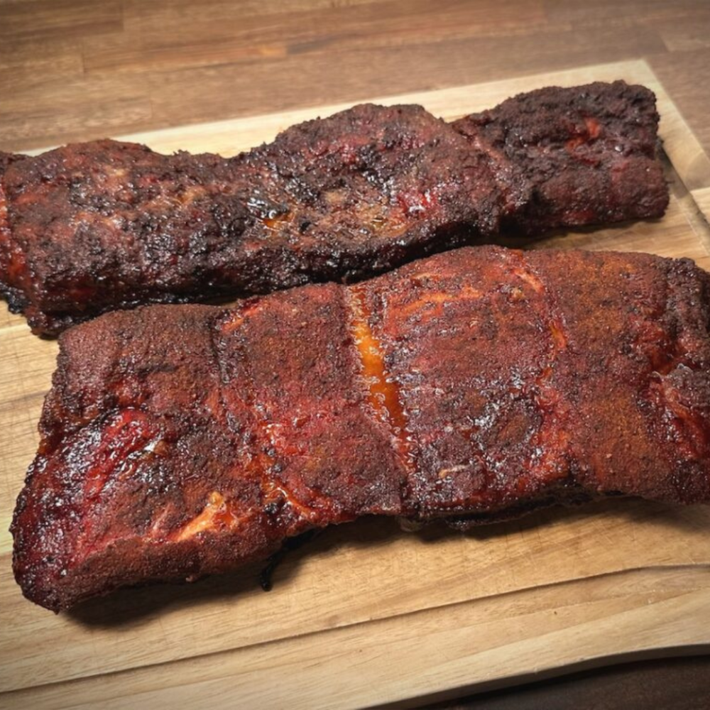 Når de er færdige, skal ribsene hvile i varmeboks eller dækket til i mindst 1–2 timer, så saften samler sig igen. Først her er de klar til servering – saftige, smagfulde og helt perfekte som benløse Spareribs.
