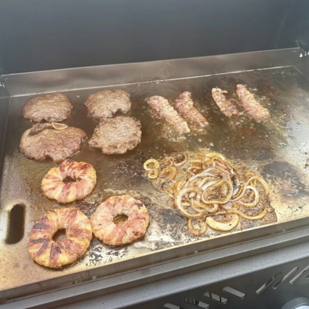 - Tilbehør: Ananas skiver, Bacon, Burgerboller, Aioli Bacon Sauce, Chili Cheese Sauce, Cheddarost, Løg, Sweet Onion Sauce, Steak Seasoner & Steak Crust eller alm. Salt og Peber, Madolie