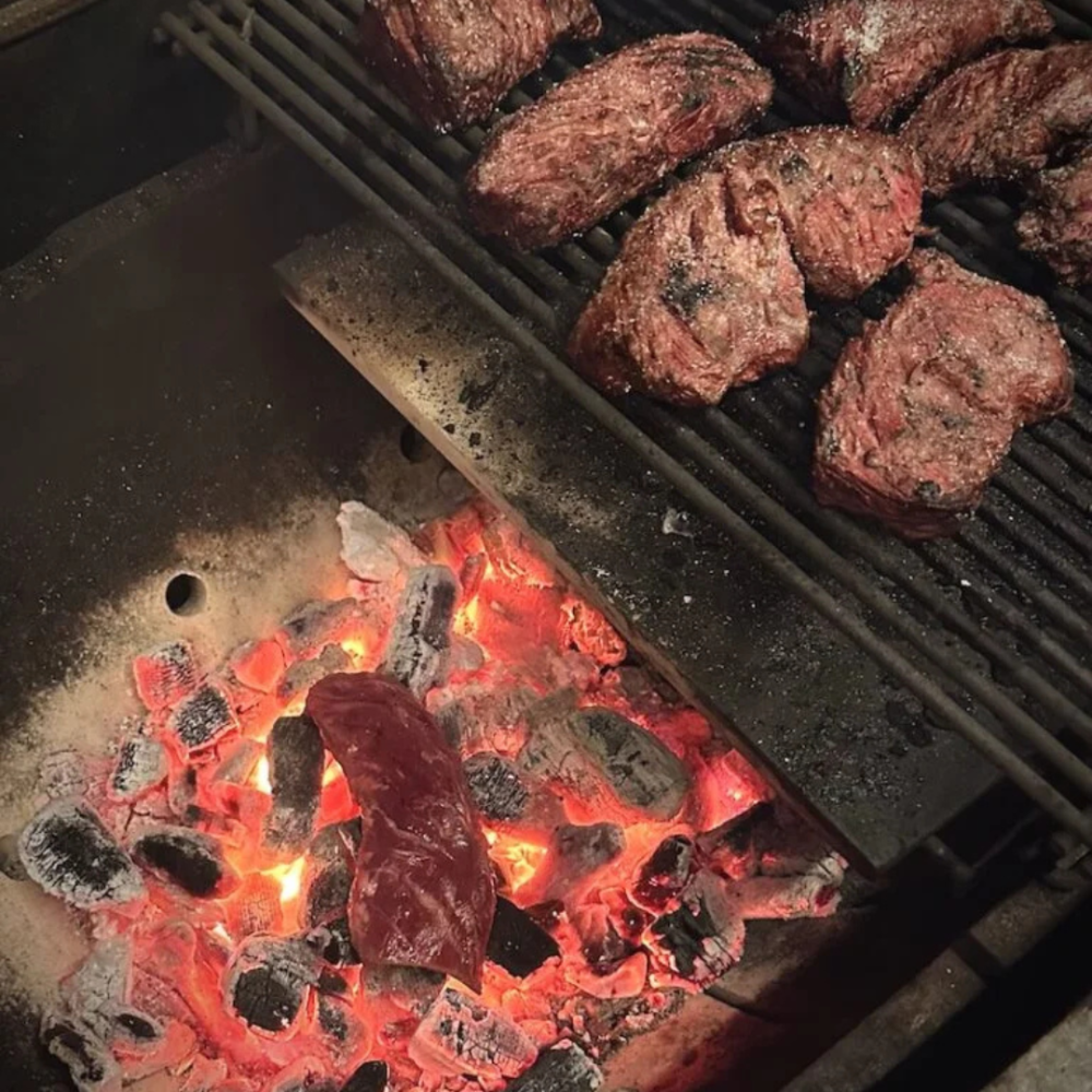 Rigtigt tilberedt er nyretapper (onglet) et fantastisk stykke kød – mørt som en filet, men med langt mere intens smag. En rustik, primal og vanvittigt velsmagende oplevelse – præcis som kød skal være, når det bliver tilberedt direkte i gløderne.