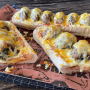 Mørbrad pizza og salat med spinat, jordbær og ristede pinjekerner