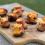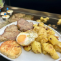 Marinerede Nakkekoteletter på Plancha med Brasede Kartofler, Grillet Havarti og Spejlæg
