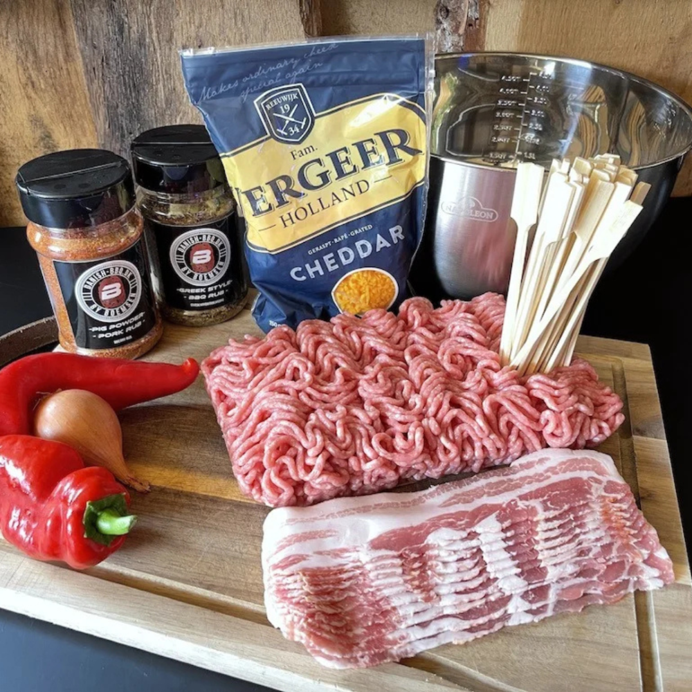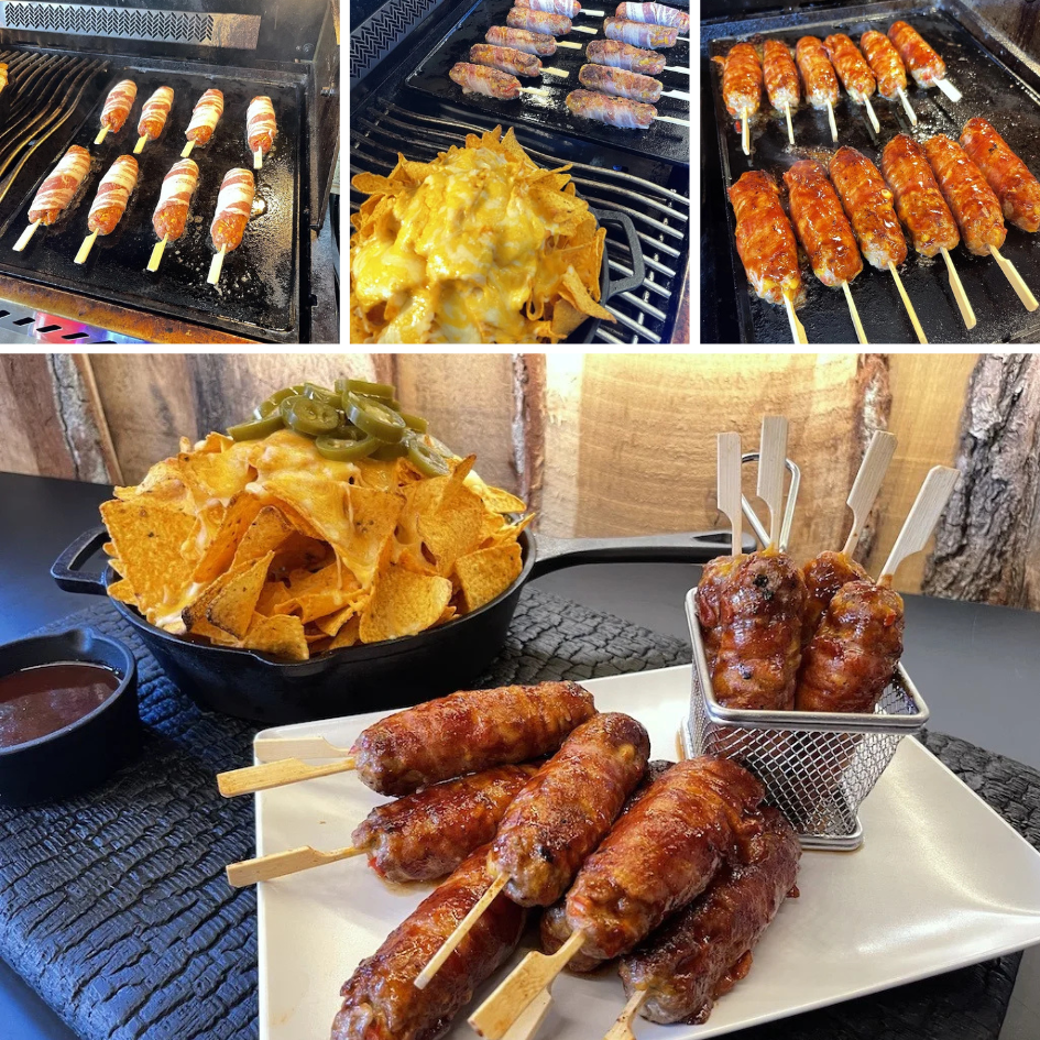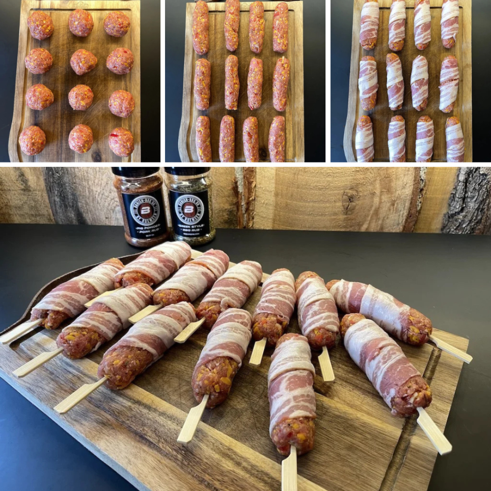 Pig Sticks rammer alt det, der gør god fingerfood farligt vanedannende: saftig fars, smeltet cheddar, sprød bacon og en klæbrig BBQ-glaze. De er simple at lave, og de fungerer både som snack, forret eller ren hygge på grillen.