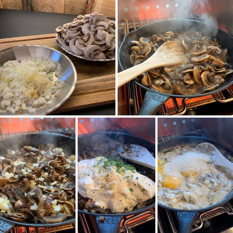 Varm 20 g smør i en gryde ved medium varme. Steg champignon ca. 5 min.