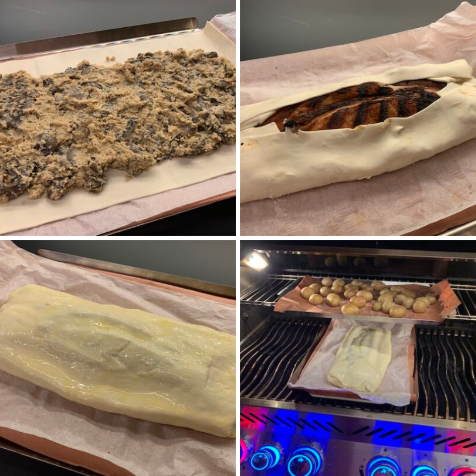 Indstil grillen til 200°C indirekte varme og flyt fileten derover, mens du gør butterdejen klar.